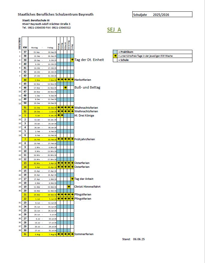 Praxiszeiten SEJ 2025/26